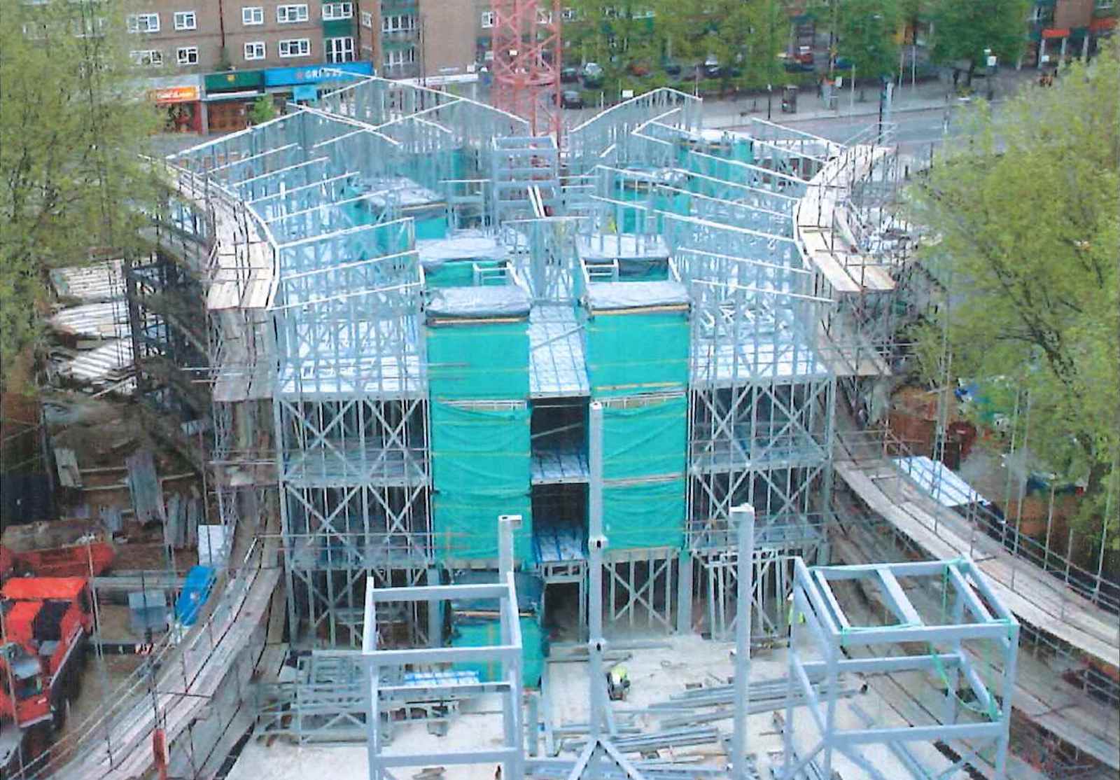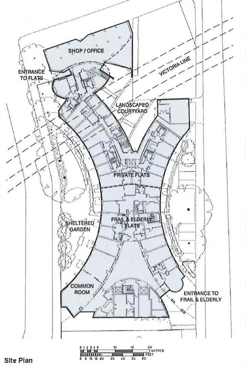 A landmark mixed-use scheme providing 30 sheltered flats for frail and elderly residents alongside private apartments for sale. The project bridges over the Victoria and Northern Line tunnels, requiring a lightweight steel frame structure and modern methods of construction, including prefabricated cassette wall systems and off-site manufactured bathroom pods. The architectural form creates two crescent-shaped blocks framing a sheltered garden and public forecourt, with a distinctive ‘egg tower’ providing a focal point within the urban context.